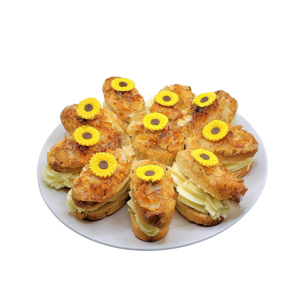 I gave up on making my own macarons. They’re spendy to buy but I understand why. Maybe someday I’ll perfect them but for now, I’m leaving them to the experts. These German bee sting cakes are interesting. They aren’t so much a cake as a sweet yeast roll filled with pastry cream. Very interesting. I baked them off in my daisy mold.