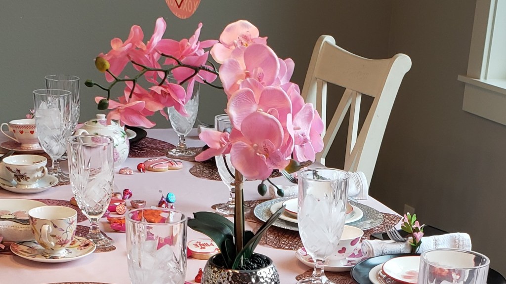 Since I never have enough heart teacups to go around, I mix and match with white, silver, gold, and pretty much anything else that will match the color scheme. This year I needed two tables plus my bar seating so I bought more heart place mats in rose gold.