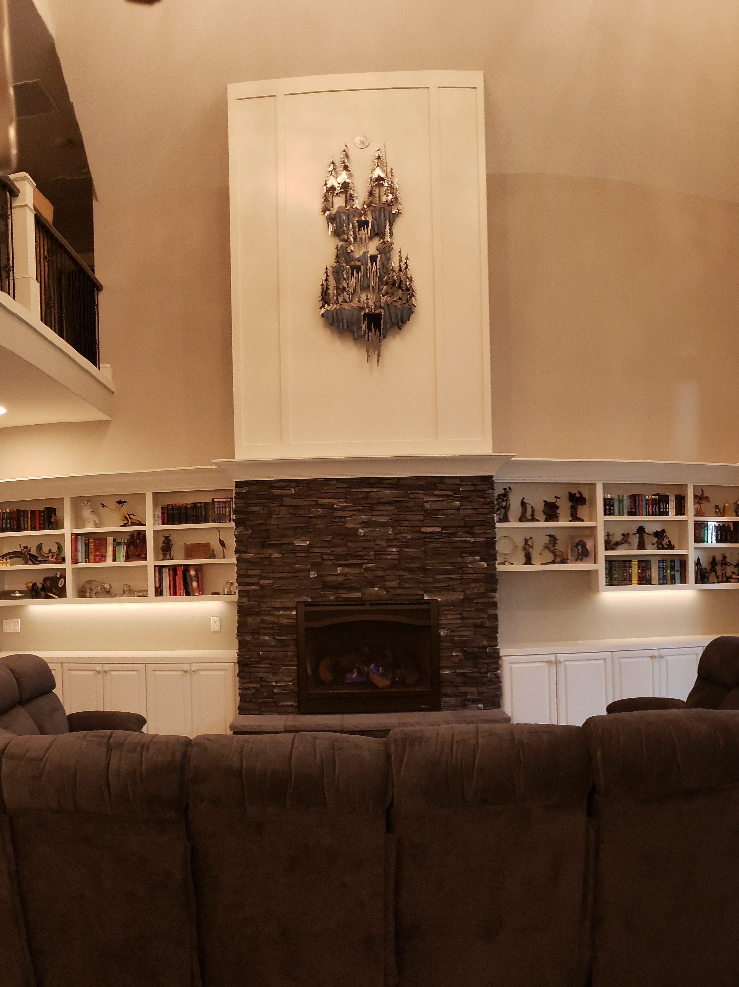 Over the fireplace, you’ll find a gorgeous custom metal sculpture created by Oregon born artist, Donnie Wanner. More of his work can be found at shafferfineart.com
